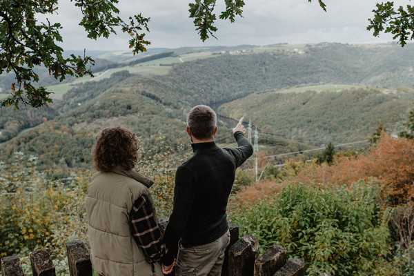 Discover the beautiful rolling countryside around the medieval village of Vianden with one of our hiking guides. From the heights, let your gaze wander over the Our valley, seek out the ruins of Falkenstein Castle and marvel at the breathtaking view of Vianden and its imposing castle. The hike also includes a viewpoint that served as the setting for Victor Hugo's famous work. Your guide will enrich your day out with historical anecdotes, explanations of the geology of the Our valley and background information on the flora and fauna. A truly interactive experience that leaves no question unanswered.