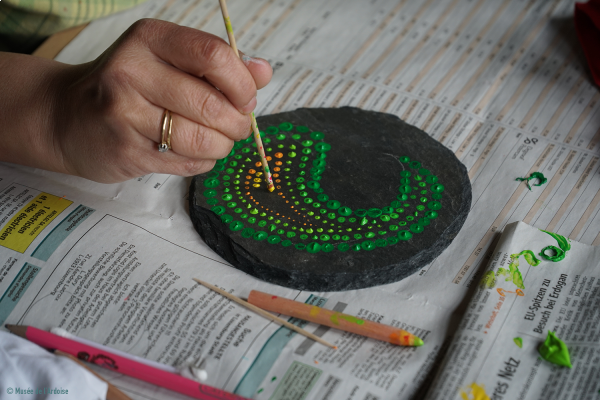 - Paint and decorate your slate using the dot technique